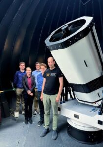 Pictured: ANU team Marcus Birch, Kate Ferguson, Michael Copeland, Elisa Jager and Francis Bennet inside Mount Stromlo Observatory in Canberra.